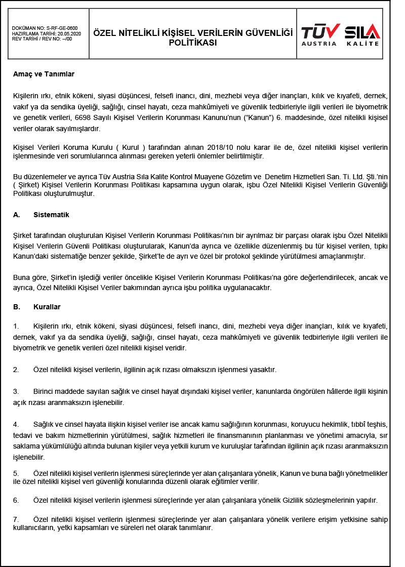 Kişisel Verilerin Korunması Politikası